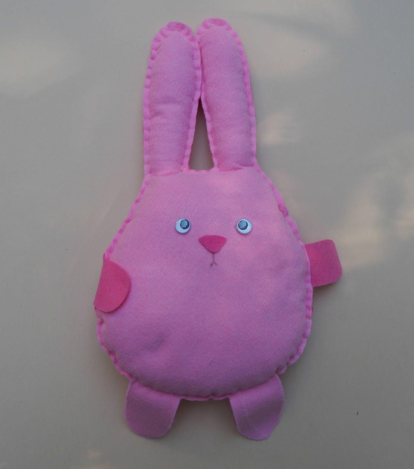 And if you want, you can cut off the top layer of light pink felt on the arms so that Bunny has two dark pink arms to match his little nose as above.