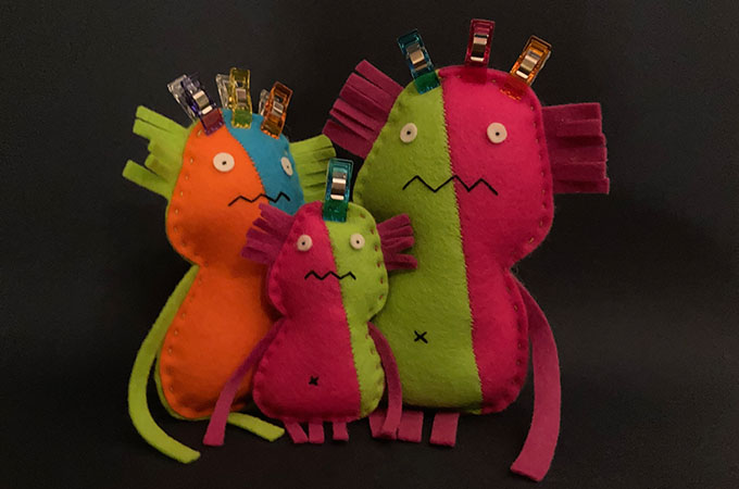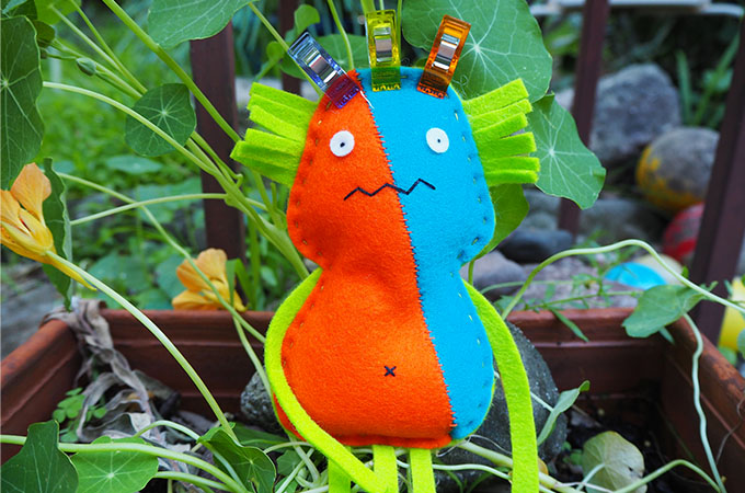 Being a zenki-style softie, she doesn’t require fiddly insertions for things like arms, legs or any extra bits sticking out that monsters sometimes have. That makes her an ideal project to sew with a group of kids or, if you’re a teacher, to sew with your students.