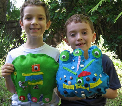 Really great post Trixi, they look so proud of their work!! Love those buttons from different missions the boy's monster has been on.