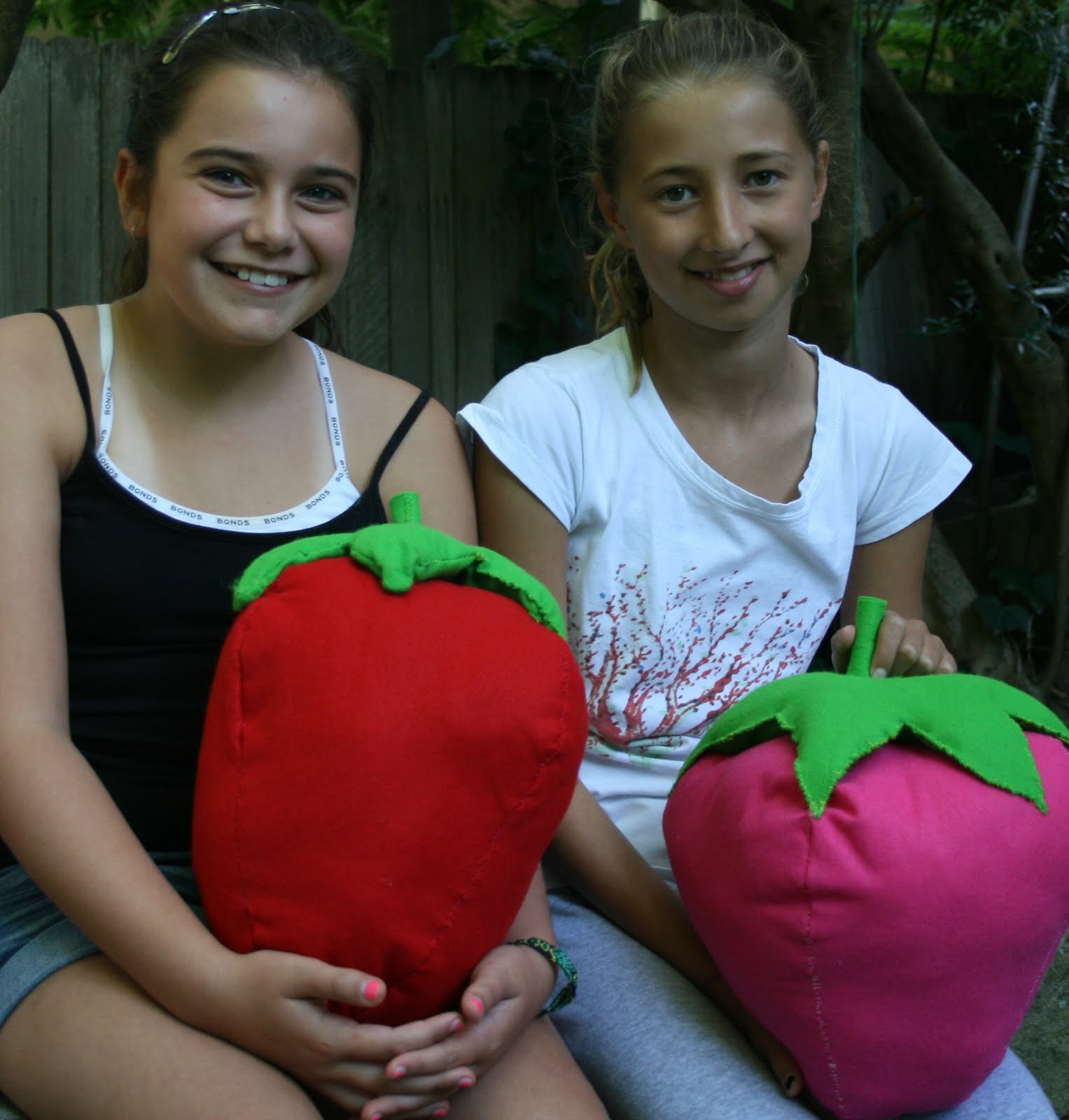 Lastly, a photo of my “strawberry girls”. These two are the oldest in the group. Emma (on the left) asked me in a previous workshop if she could make cushions for her bed…she’d seen a strawberry cushion in a book and liked the idea…so Yiscah and I whipped up a simple design…I love working with the kids ideas to help them create their own stuff rather than just thinking it all up for them: