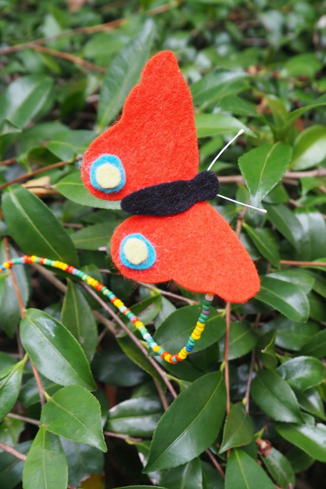 To make this pretty little fellow you only need some felt, a length of wire to place the butterfly on, an artificial flower stamen (which can be bought from a craft shop) to make the antennae from, a bowlful of beads and a little glue. You can find the complete step-by-step tutorial HERE.