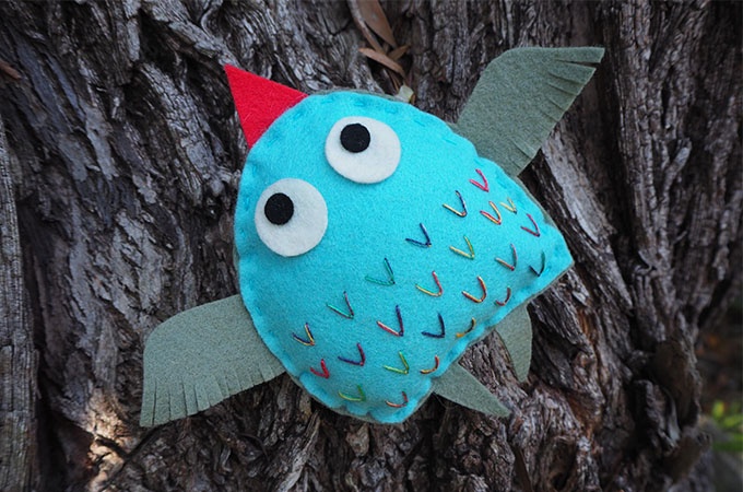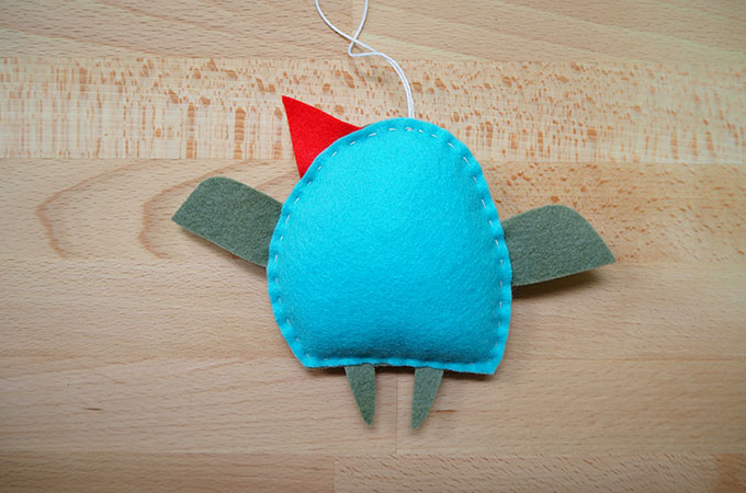 The simplicity of her design, however, isn’t due to her Scandinavian ancestry. It’s a zenki thing. Zenkis are the name I give to softies that, like Inga, can be made from just two pieces of felt with no need to insert and pin things like wings and legs (or whatever else) into place.