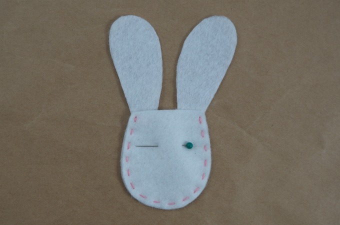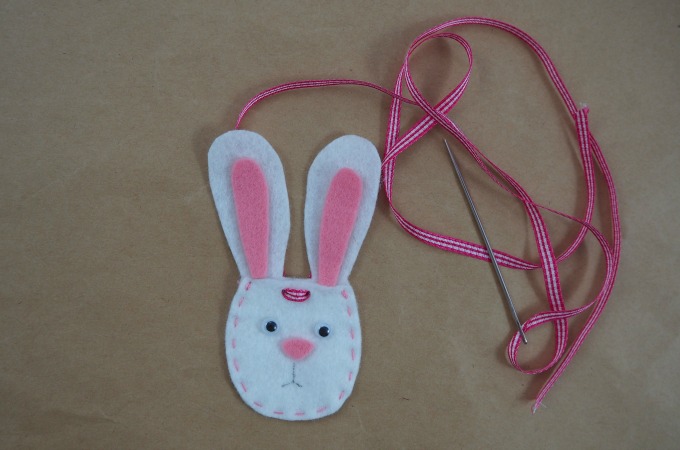 Use a thick needle to make two holes between the bunny’s ears as shown above…