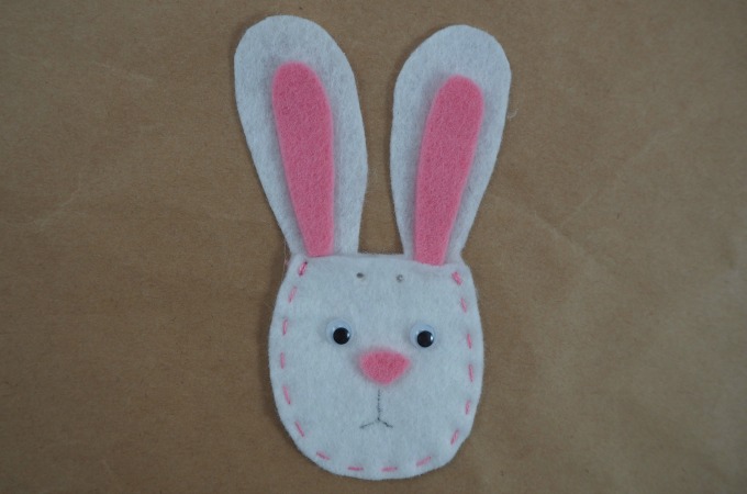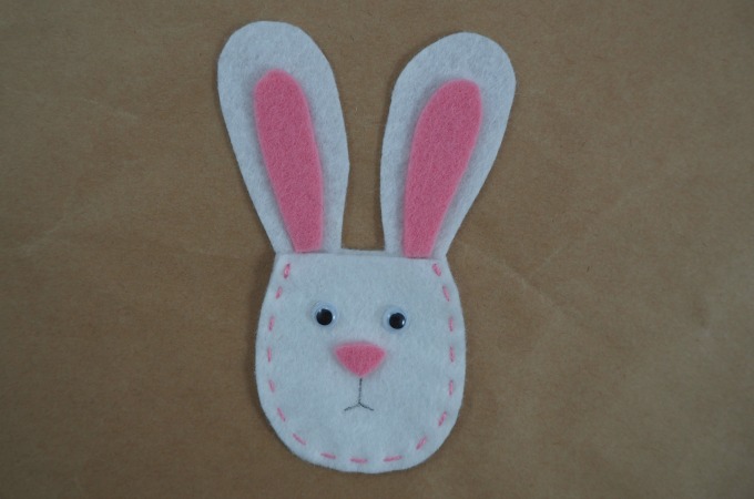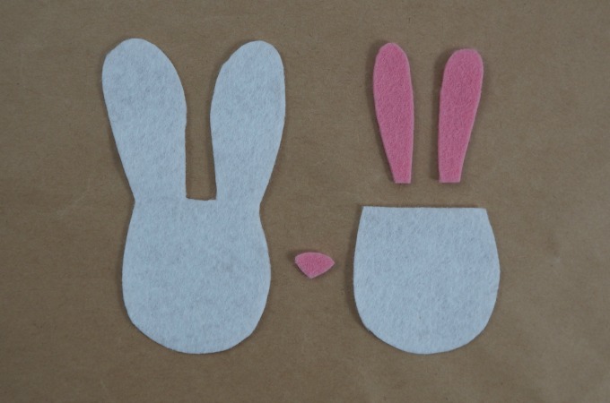From the pink felt cut out the shapes for the inside of the ears and the shape for the nose.