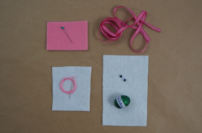 Use a pencil or fine felt-tipped pen to draw on the mouth as shown above. It’s a good idea to practice the mouth on a scrap of white felt first and to check that your pencil works well on your felt or that your felt-tipped pen doesn’t bleed into the felt.