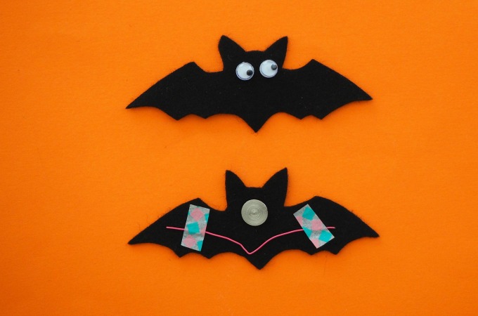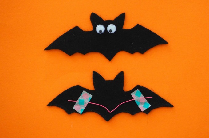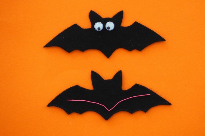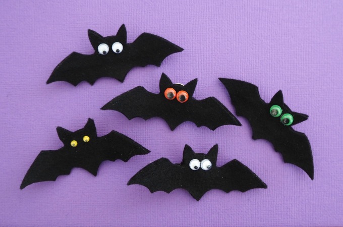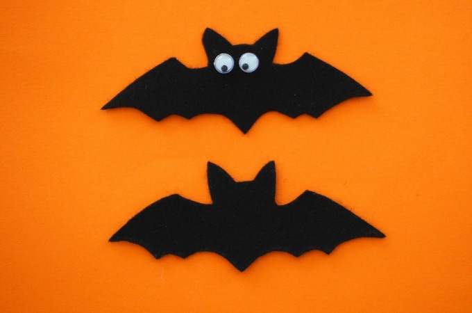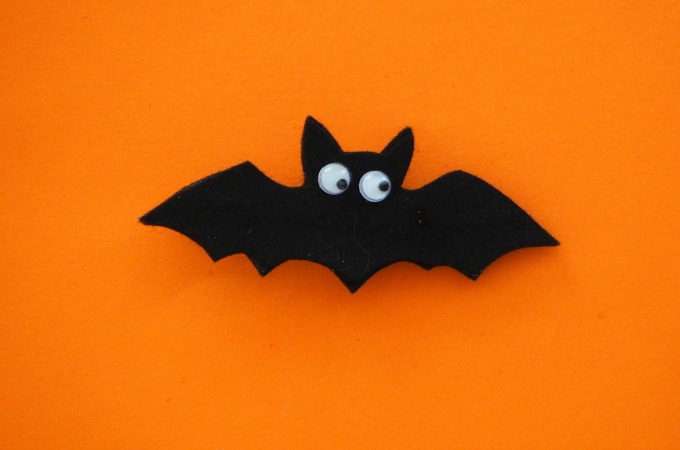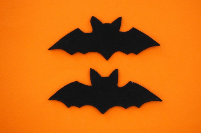 Download and print the bat pin template. Cut out 2 bat shapes from black felt.