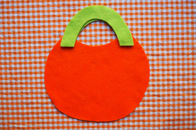 Take the remaining pumpkin shape and place the two handles on top.