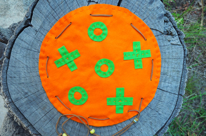 Below is another example of this pouch that I use when sewing with boys. In Australia, this game is known as noughts and crosses, which explains the decorative noughts and crosses on the outside of the pouch.
