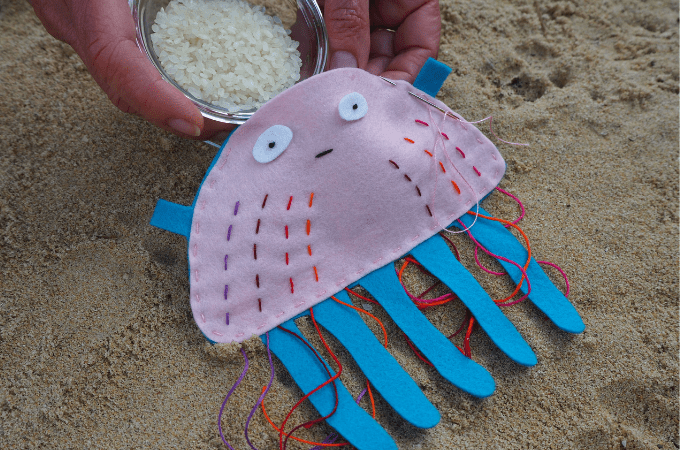 She’s a cute bouncy jelly fish softie full of personality (as well as some rice grains and stuffing). And she is simple enough for even young kids to complete by themselves as well as giving them plenty of room to be creative and have heaps of fun.