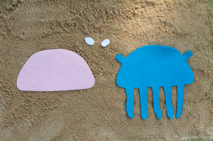 Download and cut out the template Trace the front of Amelia’s body onto pink felt and cut out. Trace the back of Amelia’s body onto blue felt and cut out. Trace the eyes onto white felt and cut out.