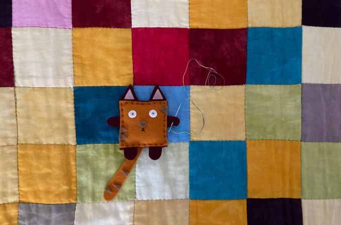 That little zenki above is Square Cat. She’s a great believer in pre-threaded needles, and so am I.