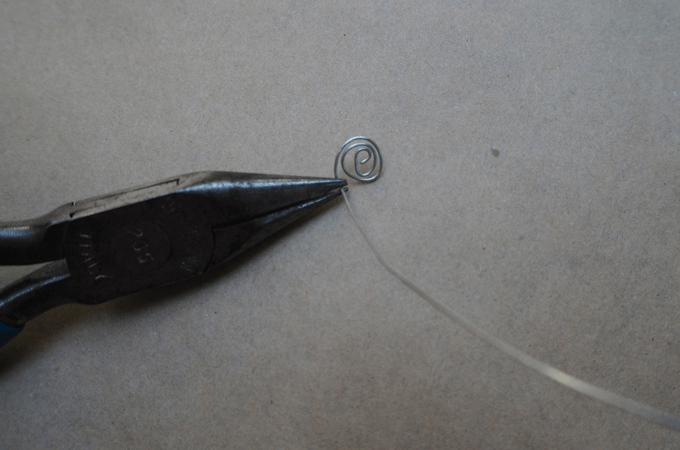 Curl one end of your wire into a spiral then bend the wire at a right angle to the spiral.