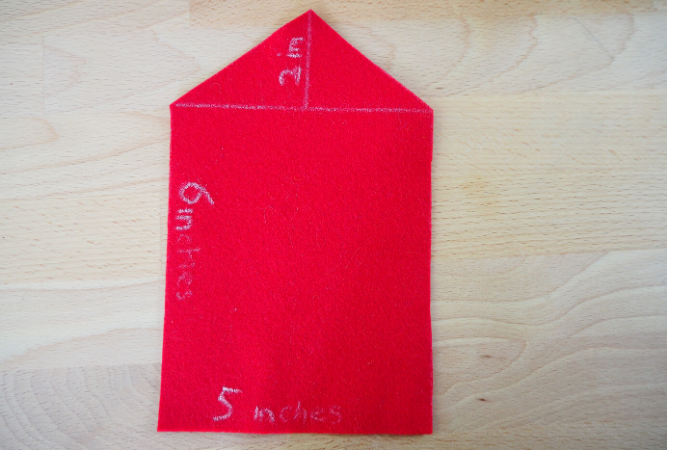 A piece of felt in the shape of a 2 storey house. Mine is 5 inches across, 6 inches high and the roof is 2 inches high.