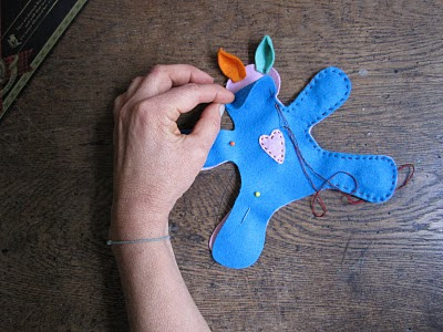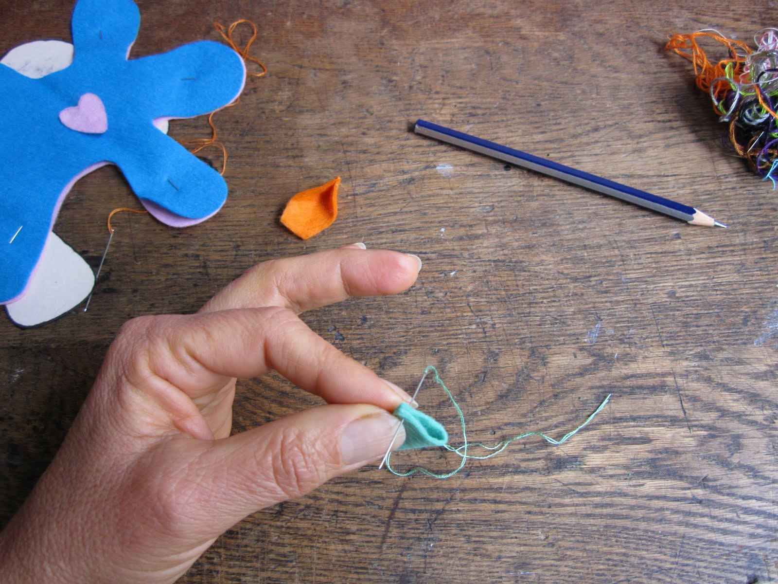 5) If you want to sew a heart on remember to do it before you sew the two body shapes together.