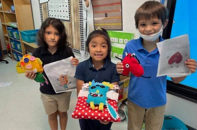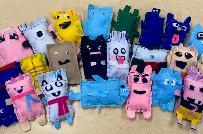Many schools join in by getting a younger class to draw a picture of a monster which the older students then turn into a soft toy to gift to the younger child. Lesson plan coming soon!