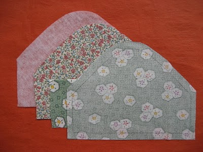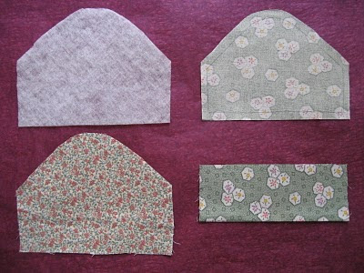 The template for the pouch is a “house” shape. The base of my “house” is 15.5cm, the sides are 5cm high, and a line drawn staight up from the middle of the base to the highest point of the “roof” is 11cm.