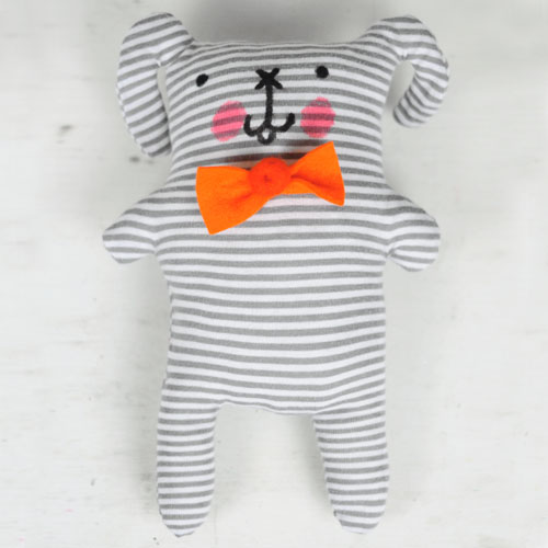 A striped dog doll I made out of an old t-shirt that didn’t fit me anymore.