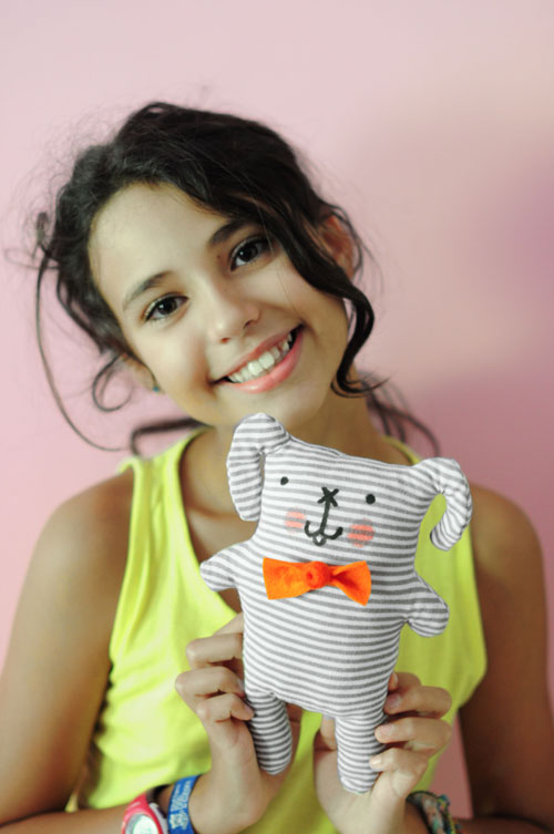 I’d like to introduce you to Leonor, our latest Kids Can Sew interviewee. Leonor is 10 years old and lives in Portugal. Her mum Ana blogs over at Pinknounou. Leonor is going to show you how she designed and sewed her own sweet softie.