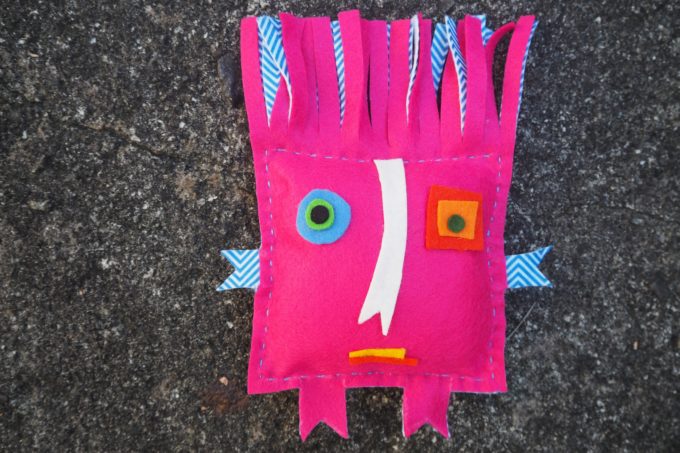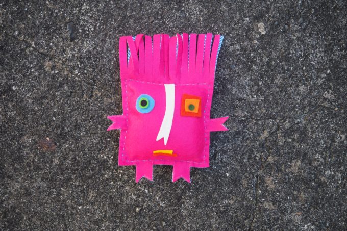 5. Cut off the excess felt from around the arms and legs and fringe the felt on your Zenki’s head to make his hair.