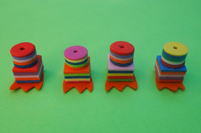 I’ve cut out three toed feet from felt and glued them onto foam beads. You can make the legs from anything you like or find. Discovering new uses for all sorts of bits and pieces can be a lot of fun.