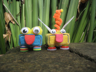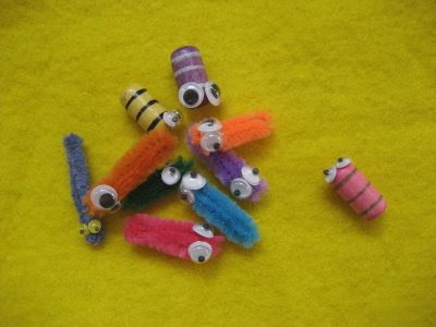 I thought I’d make this month a month of ‘Matchbox Mondays’ and show some of the activities I’ve done using matchboxes. First up are matchbox bugs. Cute little fellows but you’ve got to watch ’em. Last time I checked these guys tummies they were full of pipe cleaner worms. Now that’s not a problem, as pipe cleaner worms are a healthy and nutritious addition in any matchbox bugs diet. The problem was what else these guys were eating. Be warned. And watch your buttons.