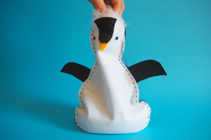 Then add small amounts of polyester fibrefill until Pengi feels and looks right.