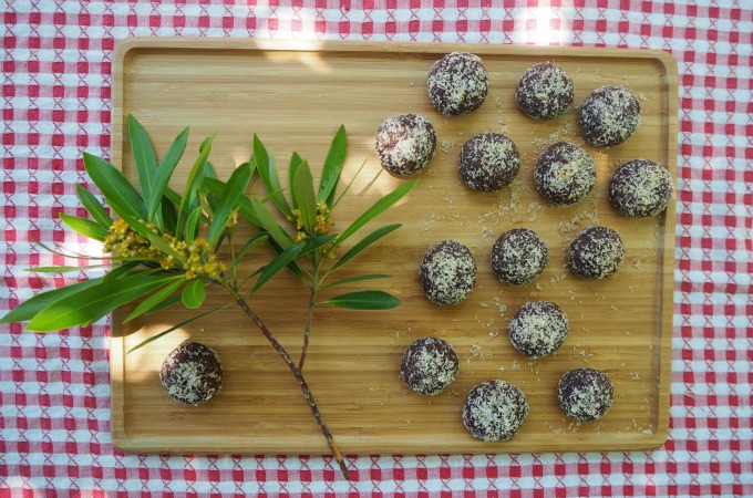 3) To make the drops: roll 2 level teaspoons of the mixture into a ball, roll the ball in the coconut and then place on a greased oven tray. Leave a space of about 2cm between the drops.