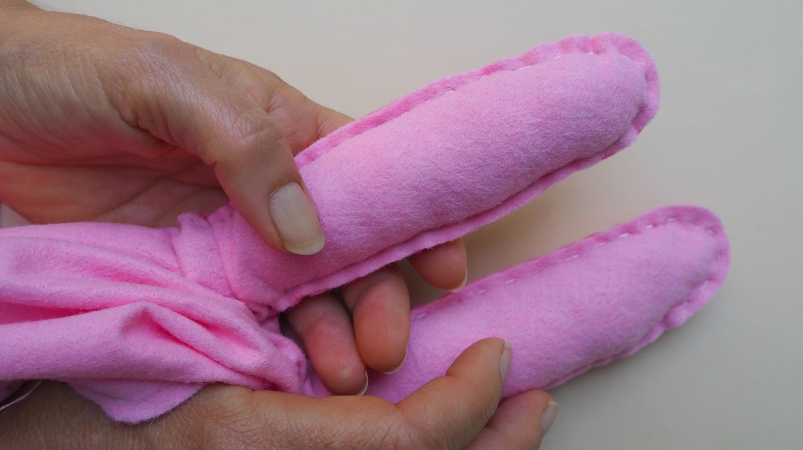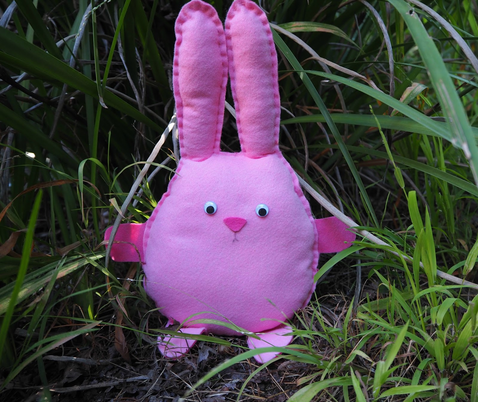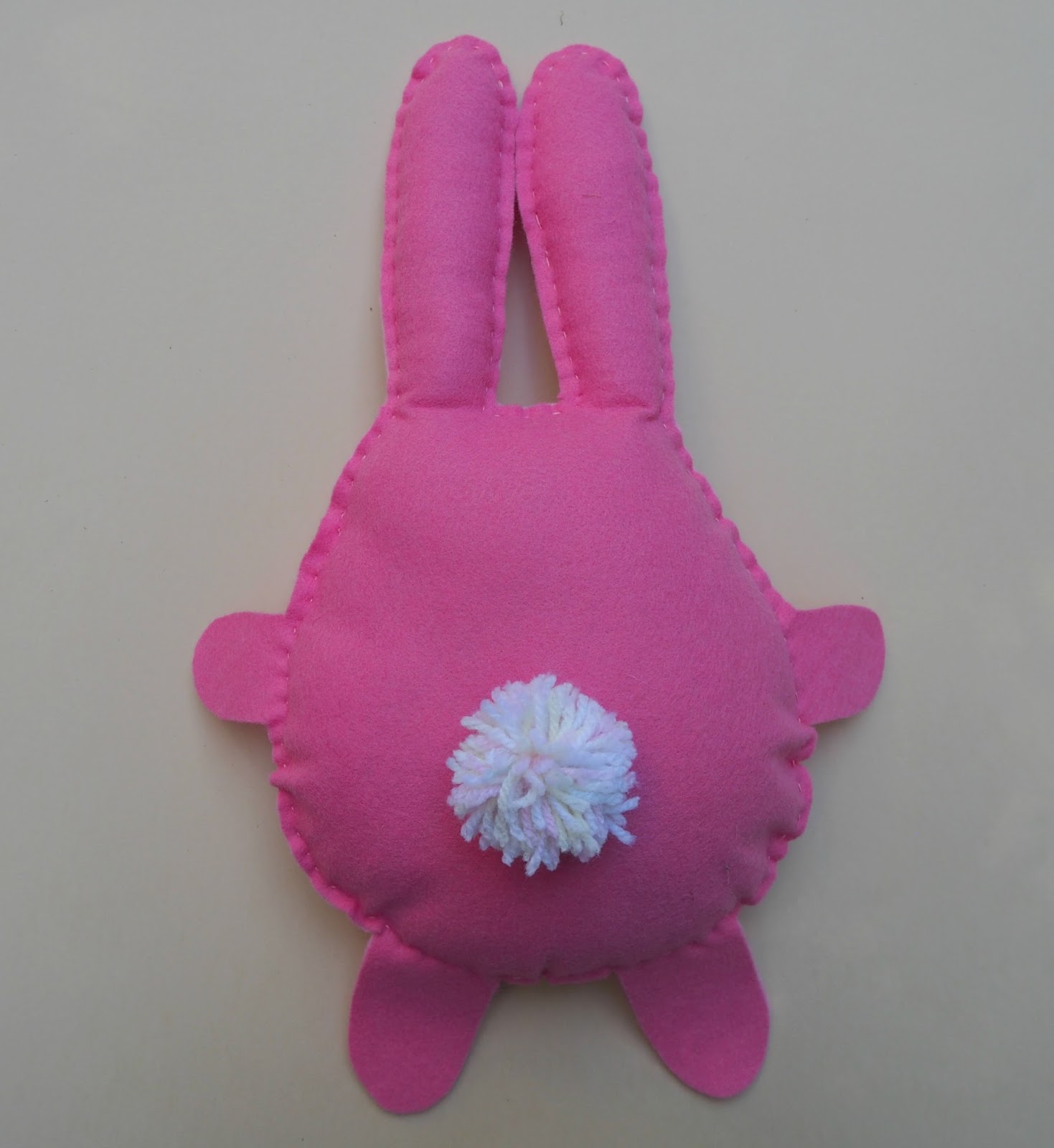And if you want, you can cut off the top layer of light pink felt on the arms so that Bunny has two dark pink arms to match his little nose as above.