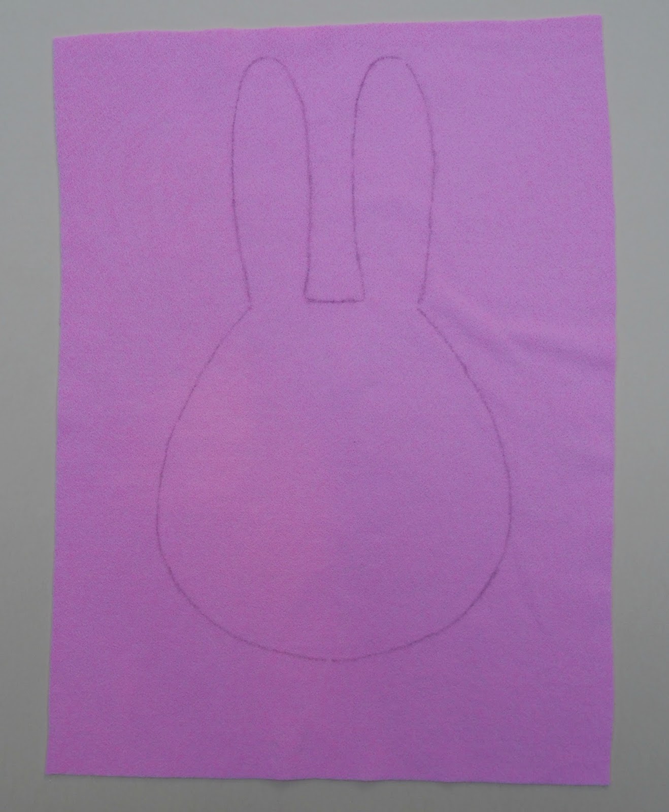 Place the template of Bunny’s body on the piece of light pink felt. Use the soft 4B pencil (a 5B will also work well) to trace around the template so you have the shape of Bunny’s body on the felt as above.