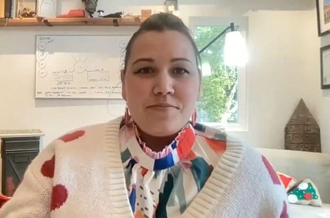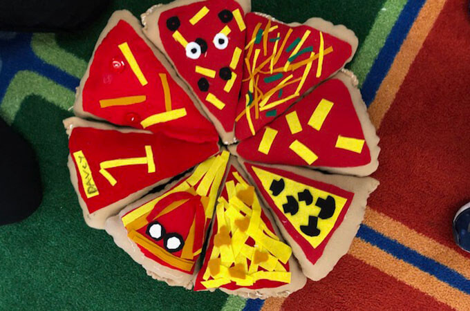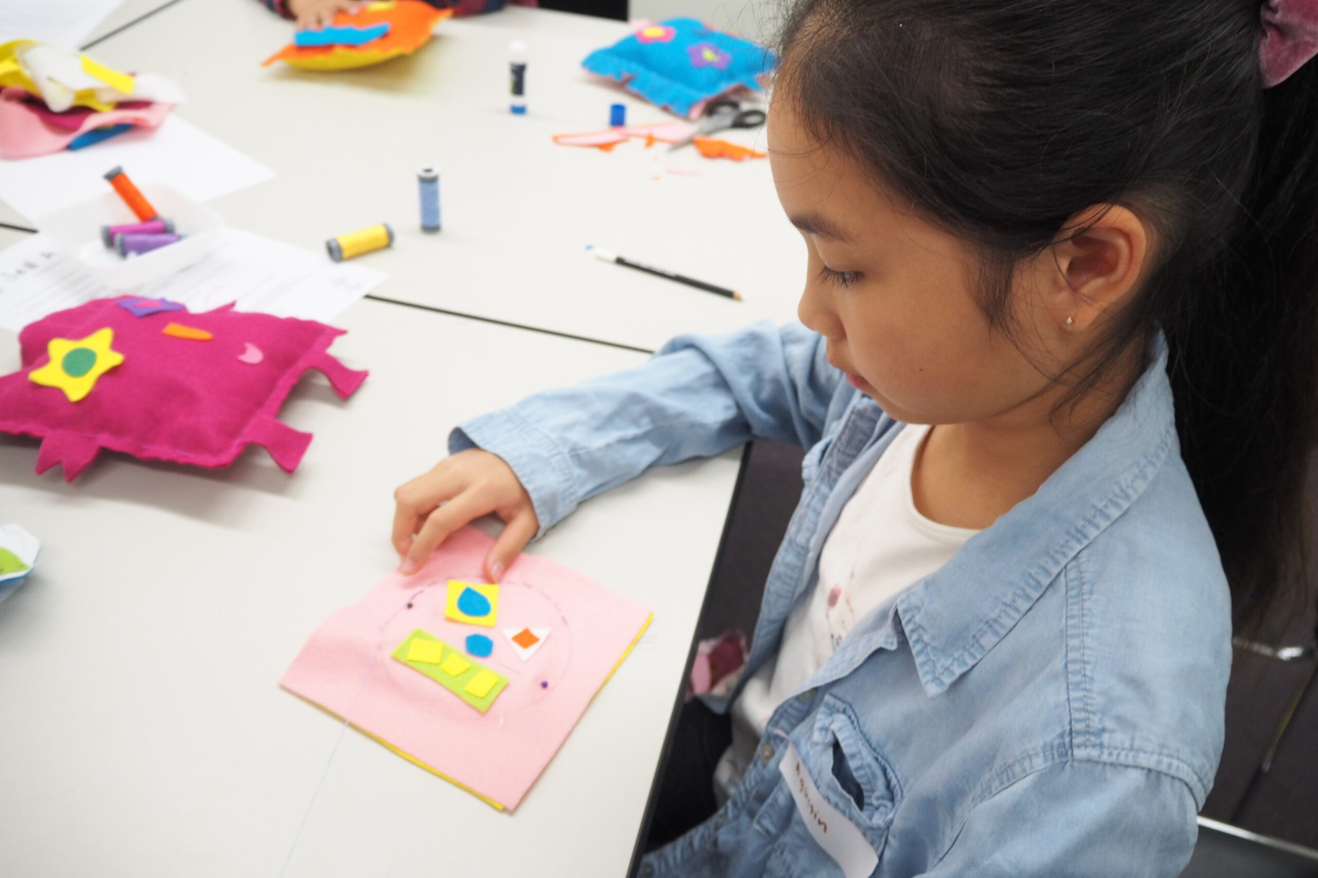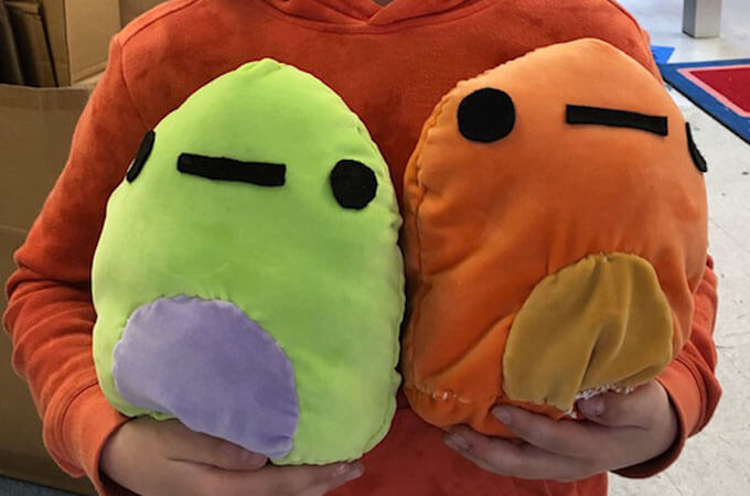 She is speaking to me about her classroom experiences, sewing slices of pizzas with her 5th graders and sewing zenkis and squishmallows with her after school enrichment class.