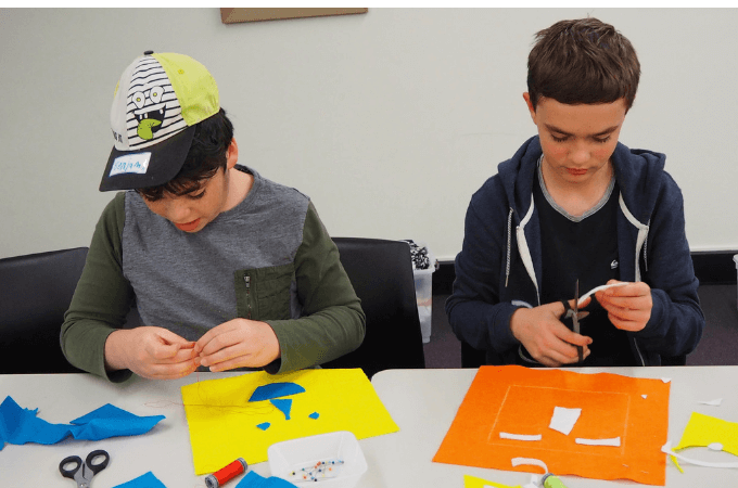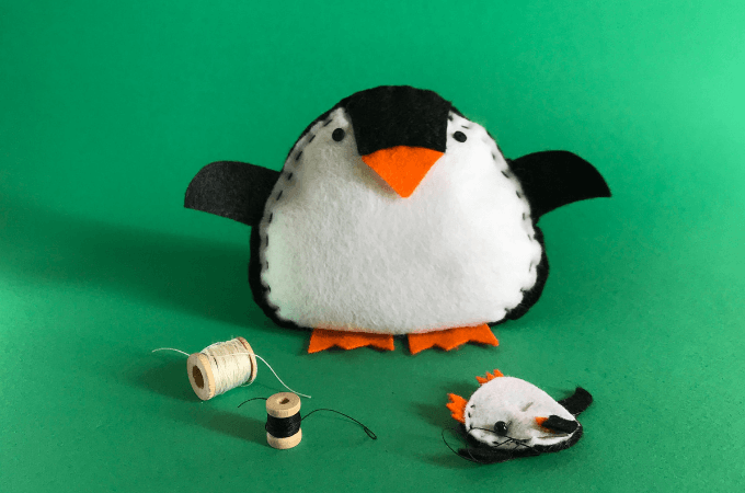 I use felt for many of my projects. It’s easy to use, doesn’t fray and comes in an amazing array of colours. The first thing you should know about felt is that there are different types of felt. The three main types you’ll find are (1) pure wool felts (2) wool blend felts and (3) acrylic felts. Pure wool felt is a beautiful fabric but way too expensive to use in workshops. Acrylic felts are by far the most popular felt used for kids. It’s inexpensive but the quality between brands can differ noticeably. They can be very hard to sew and sometimes they can be very scratchy to the touch making sewing not a really pleasant experience, especially for kids. But some acrylic felts are soft and are easy for kids to use and sew with.