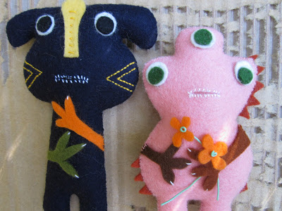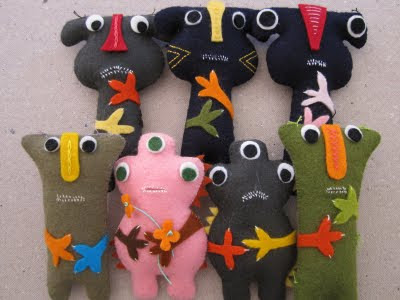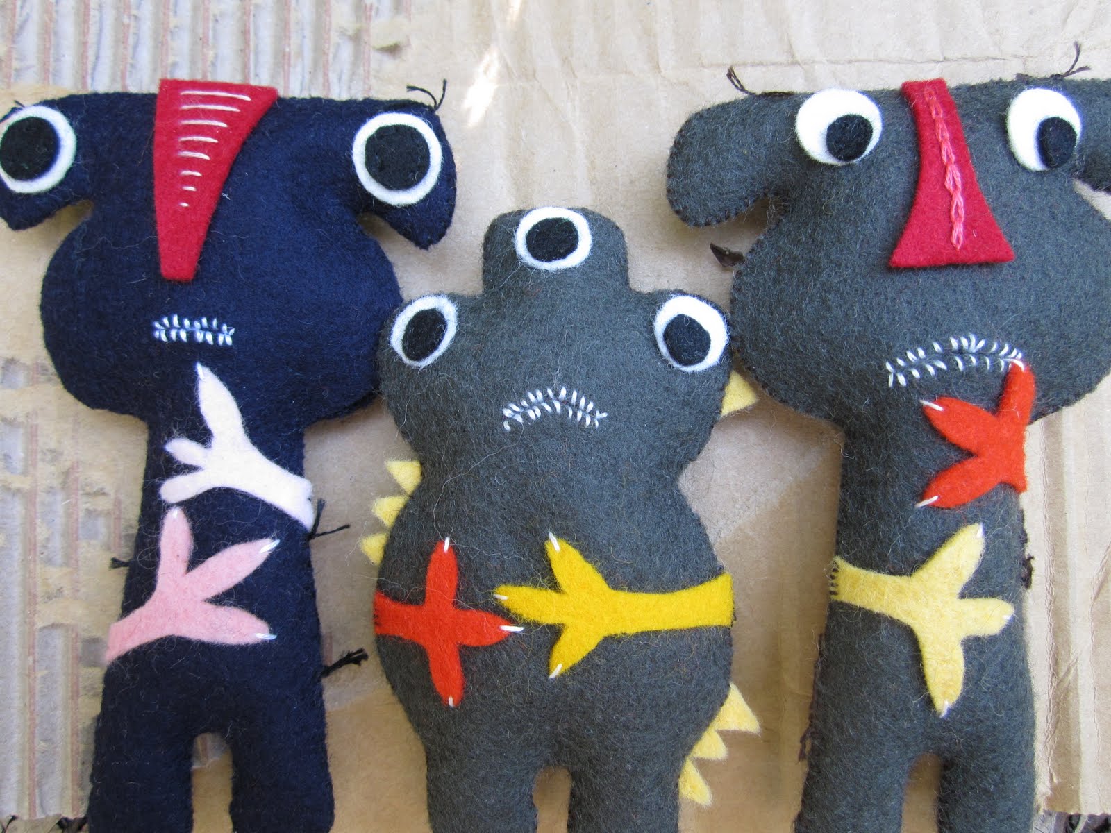 So, who are these “usual suspects”? Well, I guess the short answer is: they’re the fellows who have been keeping me busy the last few weeks…actually I think it’s more like the last few months…time does have an odd way of slipping by unnoticed…anyway, these little fellows started as a project I set myself…I wanted to take the monsteries I used to make ages ago and posted HERE and develop the design in completely new directions…and though I’m still in mid-flight…I’ve wanted to post for sooooo long…so this morning (it being Mother’s Day and me having some spare time) I told them that they were all going to get their pictures taken and they were going to be famous…well, almost famous…so here they are, “the usual suspects”, and the cause of all my not-posting:
