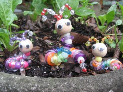 Very, very cute! Love them! I just wish that I had your kinds of resources. I've been to 5 different stores to find doughnut beads (for the other garden bugs) but had no luck. And I've never seen wings like the ones you used here, before. Germany really seems to be crafting wasteland. I'll stalk your blog now, if you don't mind =)