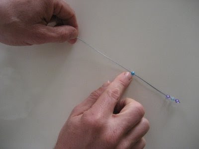 Bend wire in half and thread a single small colored bead onto one of the wire ends as in photo below.