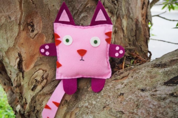 I chose Square Cat as our second summer camp project for a reason. People are oddly prejudiced against squares. In the otherwise free-wheeling Sixties, being called a “square” was definitely not a compliment! But once you’ve made Square Zenki, once you know how simple it is to make a real live softie from nothing more than a square, then you can create a whole world of square softies using the very same knowledge and skills. And that’s great for kids!