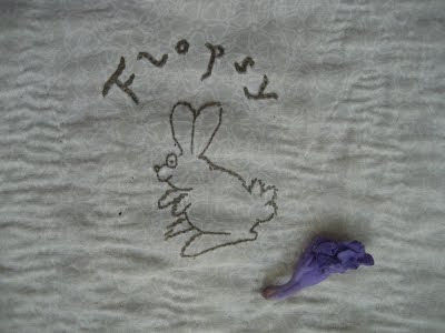 Flopsy was our very affectionate very intelligent very loved Angora rabbit…she, of course, has a square all of her own…and if you look you can just see the long grass she loved…and she probably would also have happily nibbled on that jacaranda flower: