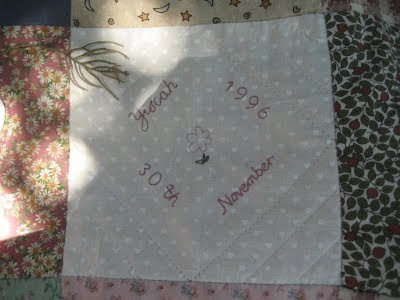 I intended to give this quilt to Yiscah for her 8th birthday in 1996: